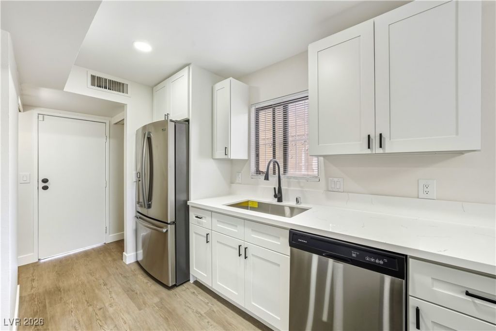Completely remodeled unit featuring modern finishes throughout. Interior upgrades include new white shaker cabinets, quartz countertops, and brand-new appliances in the kitchen. The home offers new luxury vinyl plank flooring downstairs and new carpet upstairs for comfort and durability. Both bathrooms have been fully renovated, showcasing updated fixtures and finishes. Additional improvements include fresh interior paint throughout, creating a clean, bright, and cohesive living space. Well-designed layout with updated flooring, modern kitchen and baths, and thoughtful upgrades make this unit truly move-in ready. Ideal for owner-occupants or investors seeking a turnkey property with strong rental potential. Convenient location with easy access to shopping, dining, and major roadways. Pride of ownership shows throughout.